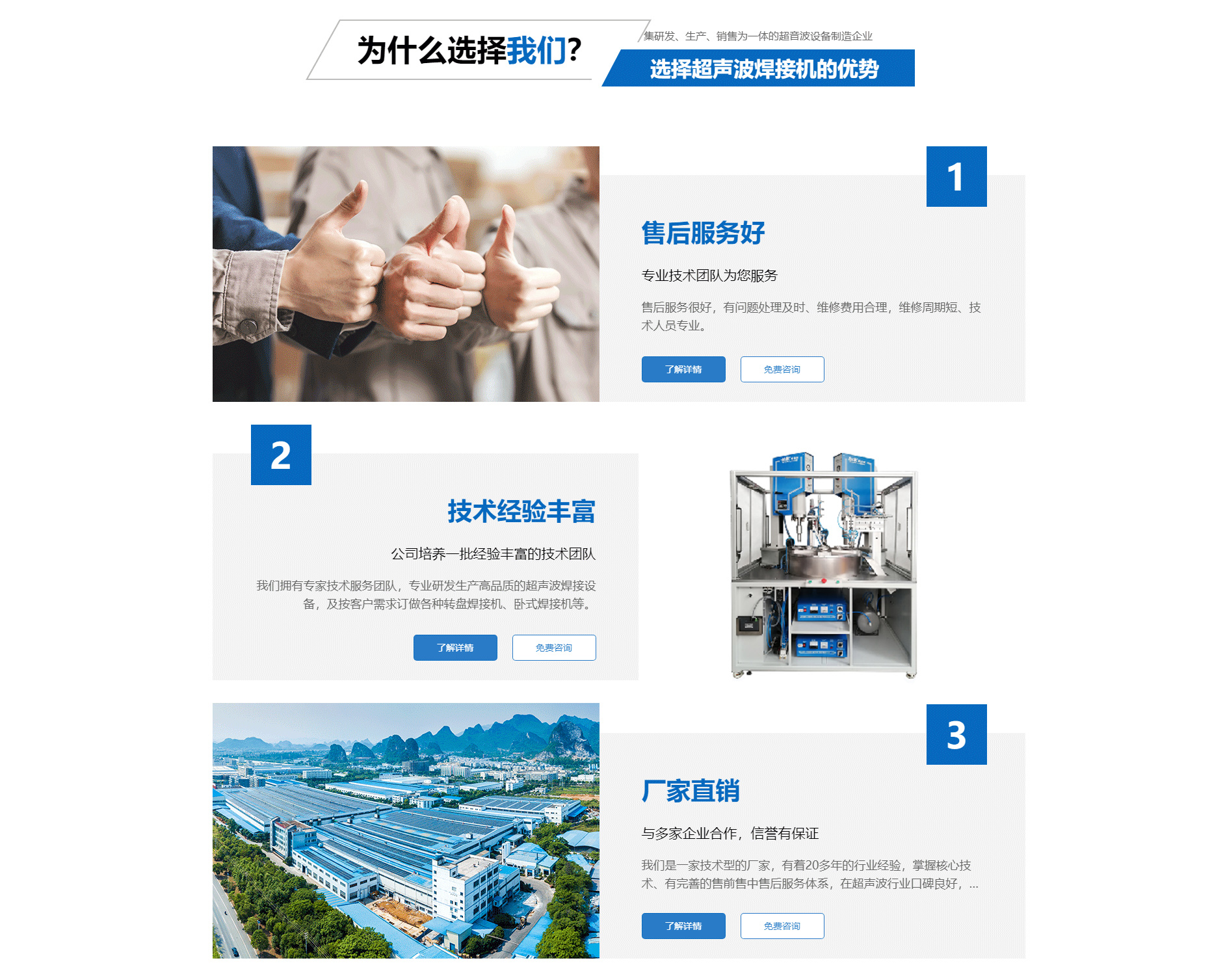 關(guān)于我們廈門勁榮機(jī)械設(shè)備有限公司是一家集研發(fā)、生產(chǎn)、銷售為一體的超音波設(shè)備制造企業(yè),主要產(chǎn)品包括多規(guī)格型號(hào)的超音波塑膠熔接機(jī)、熱板式塑料焊接機(jī)、多工位轉(zhuǎn)盤焊接機(jī)、振動(dòng)摩擦焊接機(jī)、旋轉(zhuǎn)式塑膠熔接機(jī)及配套的工裝夾具等。公司自2003年成立以來(lái),一直致力于產(chǎn)品不斷完善中,并追求產(chǎn)品的精益求精,于2004年向國(guó)家商標(biāo)局注冊(cè)了“勁榮”牌商標(biāo),2009年榮獲廈門市商標(biāo)。 經(jīng)過(guò)多年的努力,公司已經(jīng)發(fā)展成為占地面積2000余平方米、擁有員工50余人的企業(yè)。公司一直將“品質(zhì)是企業(yè)發(fā)展的原動(dòng)力”作為經(jīng)營(yíng)理念,嚴(yán)把質(zhì)量關(guān),建立了一整套有效的安全生產(chǎn)及管理模式,不僅贏得了同行的認(rèn)可,更取得了客戶的信賴,先后與九牧集團(tuán)、路達(dá)工業(yè)、建霖集團(tuán)、西伯電子、蒙發(fā)利實(shí)業(yè)、松霖科技、銥科集團(tuán)、科司特電子等公司建立了長(zhǎng)期的合作關(guān)系。 面對(duì)已經(jīng)取得的成績(jī),我們不驕不滿,因?yàn)樯钪獦I(yè)績(jī)只能代表過(guò)去,只有靠良好的產(chǎn)品質(zhì)量和完善的售后服務(wù)才能在客戶中口碑相傳,在...